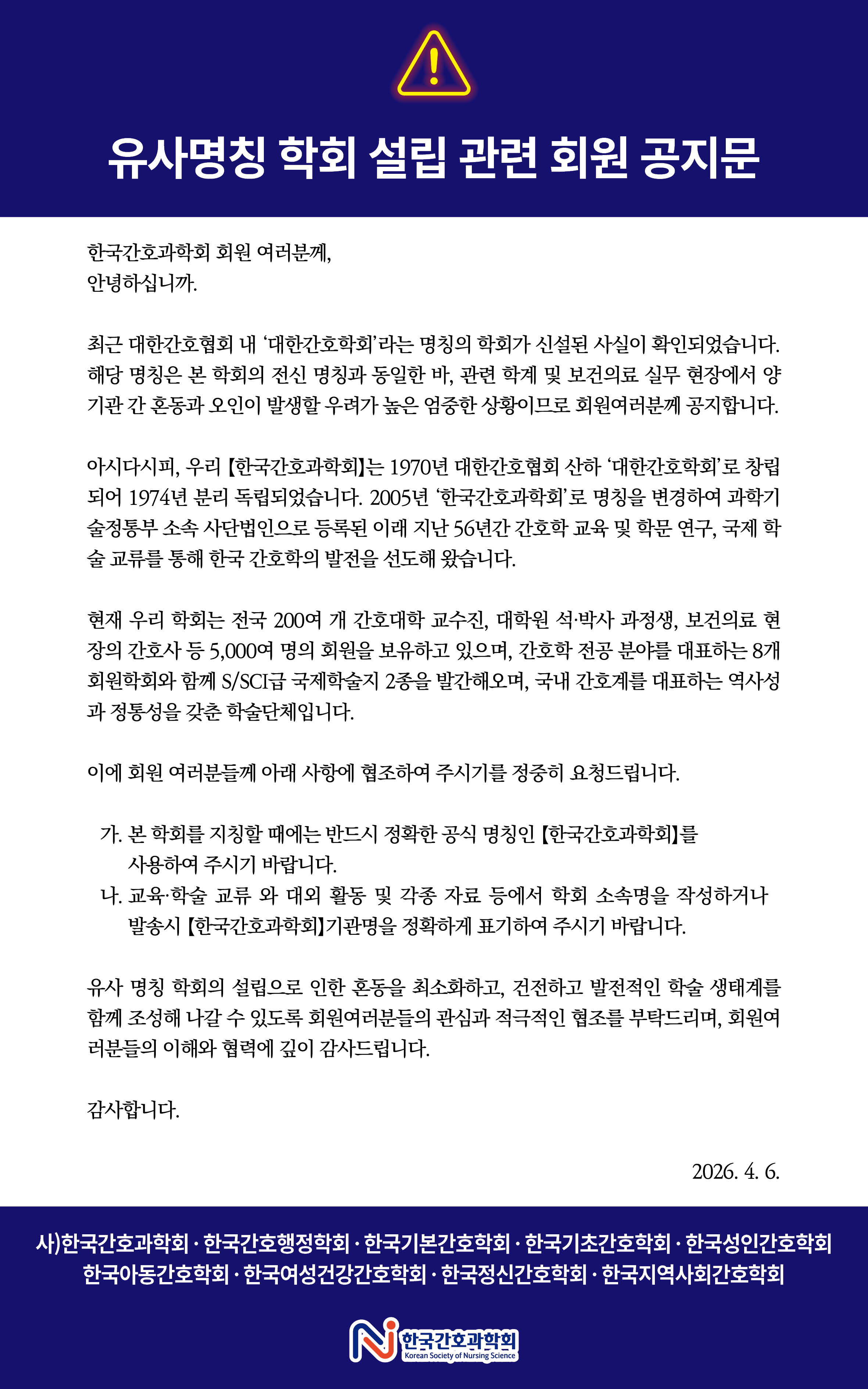  한국간호과학회 계약직 직원 채용 공고  간호계 대표 학술 연구 단체인 사단법인 한국간호과학회에서 계약직 직원을 모집합니다. 간호학 발전에 관심 있는 분들의 많은 관심과 지원 바랍니다.  1. 채용 분야 및 응시요건모집 분야인원담당업무자격채용 형태계약직 1명○ 사무국 출판·교육사업 담당자 -출판사업 지원업무: 간호사국시문제집, 모의고사 등-교육사업 지원업무: 세미나,워크숍 지원○4년제 간호학과 졸업자○간호 관련 경력 3년 이상육아휴직 대체자 2. 근무조건-근무지: 서울시 용산구 원효로 191 에르모소용산 1003호-근무시간: 주 5일(월~금)-급여: 내부 규정에 따름-근무기간: 2026.3.30.(월)~2027.7.13.(화) 3. 전형 절차-1차: 서류 전형 -2차: 면접 전형(1차 합격자에 한하여 개별 면접일자 통보)-최종 합격 발표: 개별통보 4. 지원 방법-제출서류: 이력서 및 자기소개서(첨부된 서식 사용)-접수 방법: 이메일 접수만 가능(메일주소: kan@kan.or.kr)-접수 기간: 2026년 2월 12일(목) 24:00까지 5. 유의 사항-최종합격자는 최종학교 졸업증명서, 경력증명서를 제출해야 합니다. -제출된 서류는 일체 반환되지 않으며, 불합격시 “개인정보보호법”에 따라 즉시 파기됩니다. -제출서류에 허위 사실이 확인된 경우, 채용이 취소될 수 있습니다. -서류기재 오류, 누락, 연락 불가등의 사유로 인한 불이익은 지원자 본인의 책임입니다. -기타 문의 사항은 한국간호과학회 사무국으로 연락 바랍니다. (☎02-567-2529). 끝.