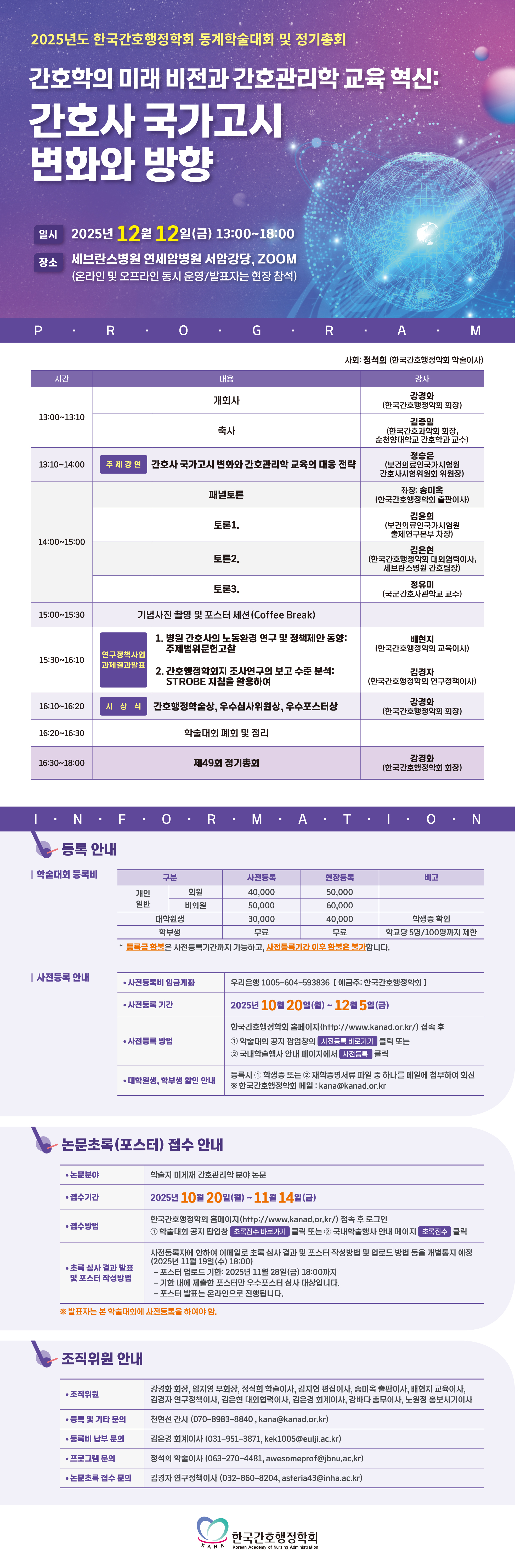 [한국간호행정학회] 2025년 한국간호행정학회 동계학술대회 및 제49회 정기총회 개최 안내